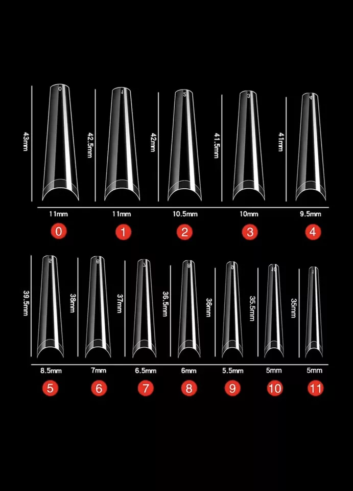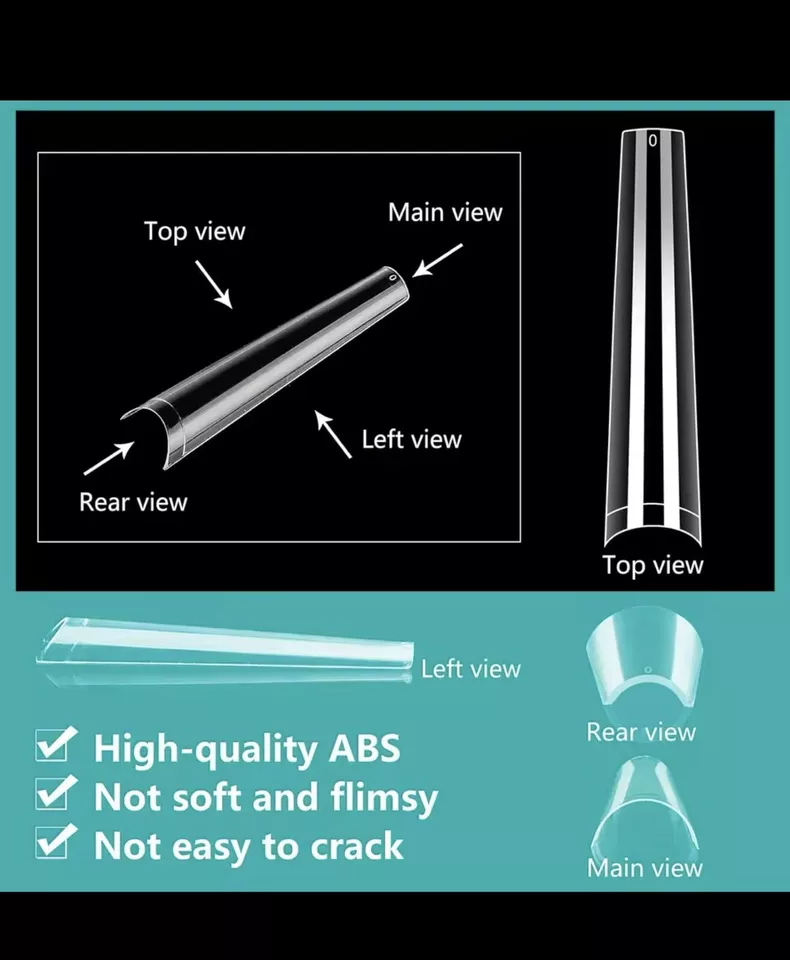 500 Pcs Nail Tips Extra Long XXL Clear Coffin NO C-Curve Fake Acrylic